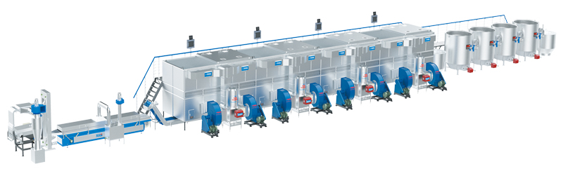 1. 采用封閉式隧道單軌設計 ,在生產中所產生的蒸汽,集中回收排放,解決蒸汽問題。